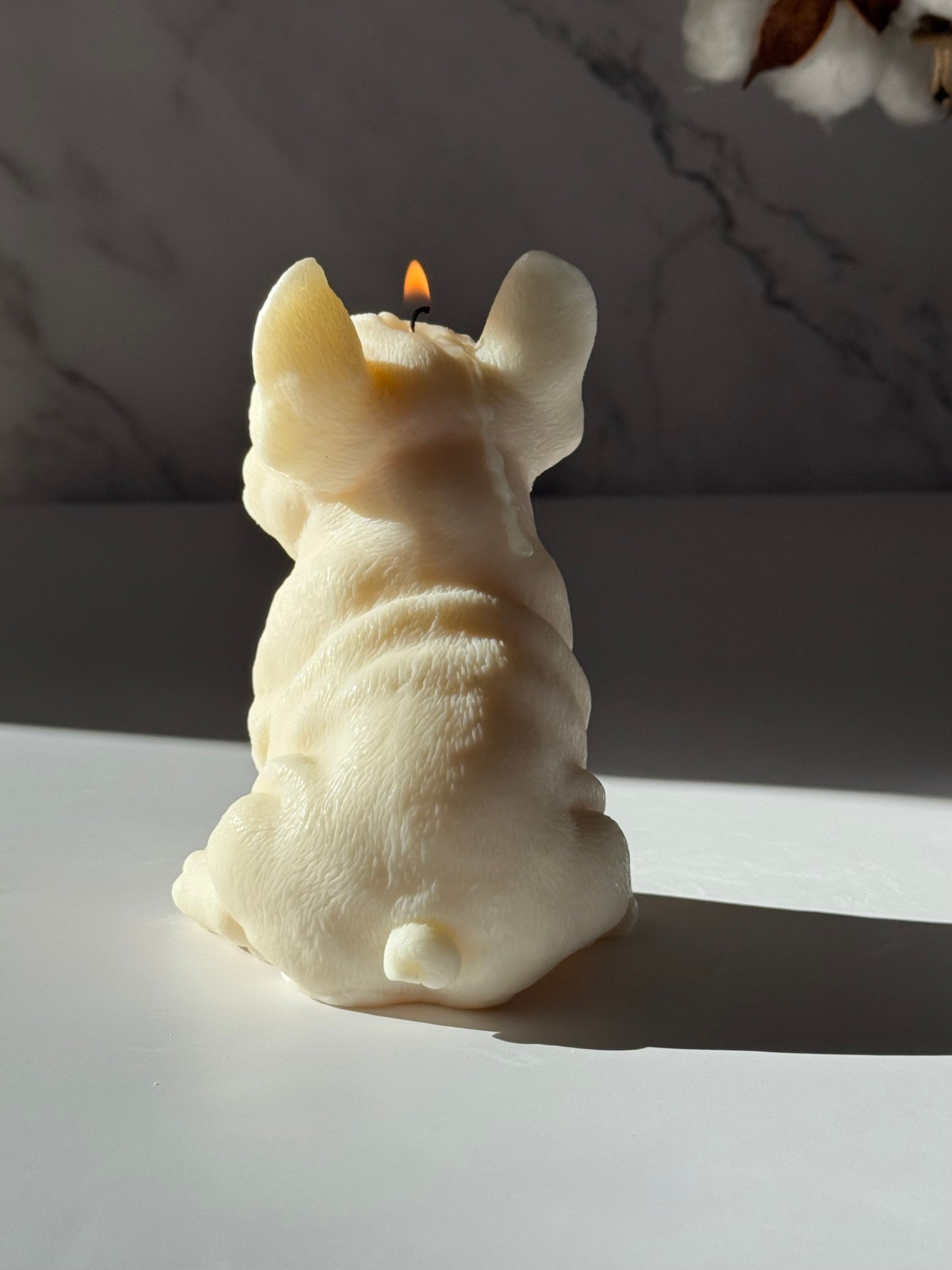 Armas Frenchie kujuline sojavahast käsitööküünal, mis toob soojust ja rõõmu igasse tuppa. See skulptuurküünal suudab isegi kõige hallimatel päevadel naeratuse näole tuua – ideaalne kingitus Frenchie fännidele ja koera armastajatele.